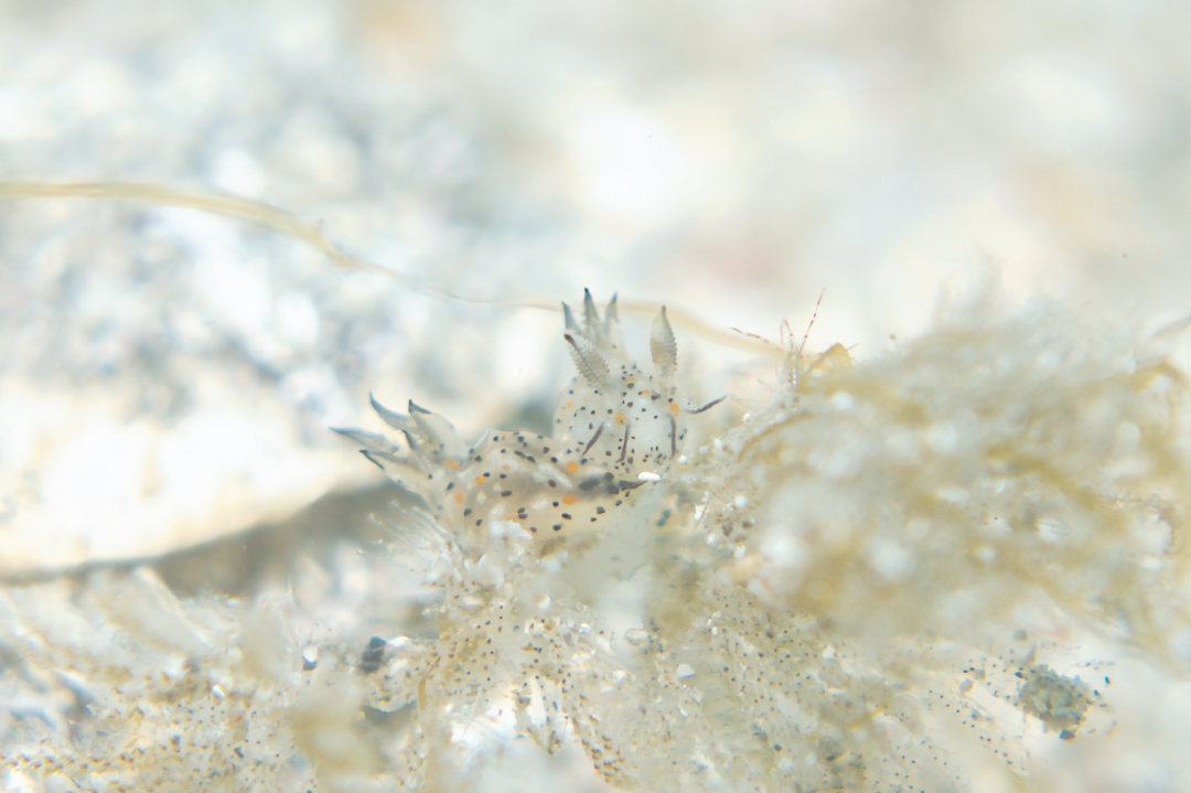 コケムシにぶら下がってるツノザヤウミウシから〜