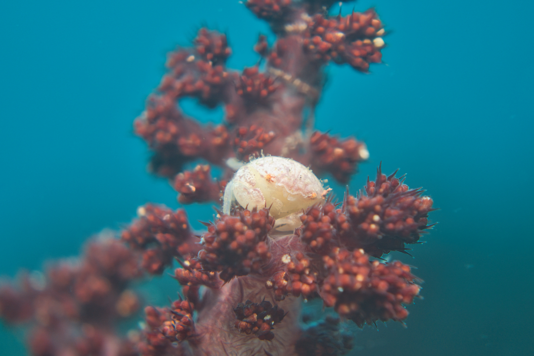 偶然見つけたマルタマオウギガニも撮ってもらいました!